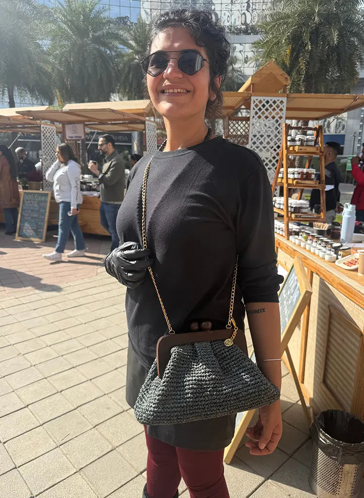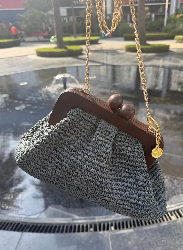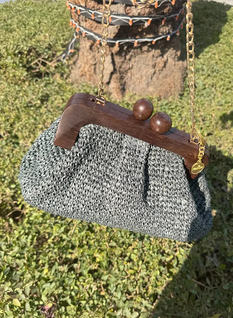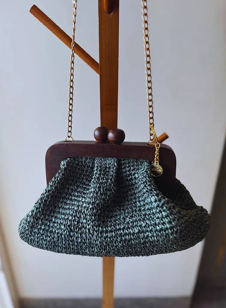Ira - raffia wooden frame bag
