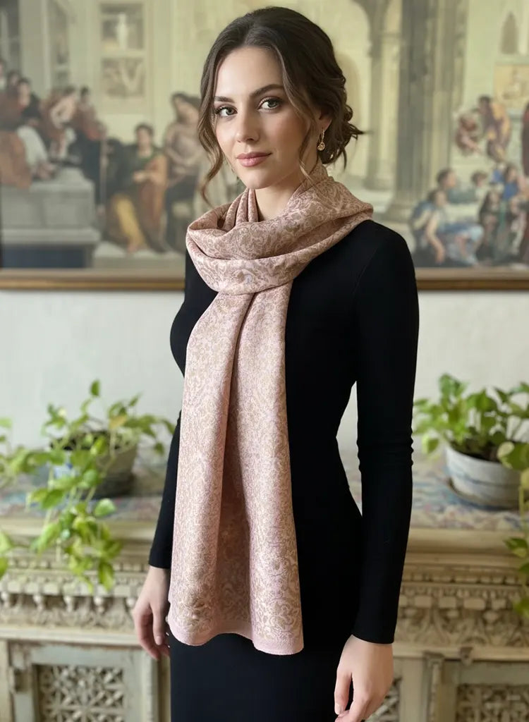 Flower Weaved Stole - Pink