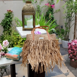 Finished with tan faux leather straps for durability and elegance, it’s the perfect carryall to take you from a busy city day to a breezy weekend getaway. Lightweight, spacious, and naturally stylish, this tote pairs beautifully with both casual linen outfits and chic summer dresses.